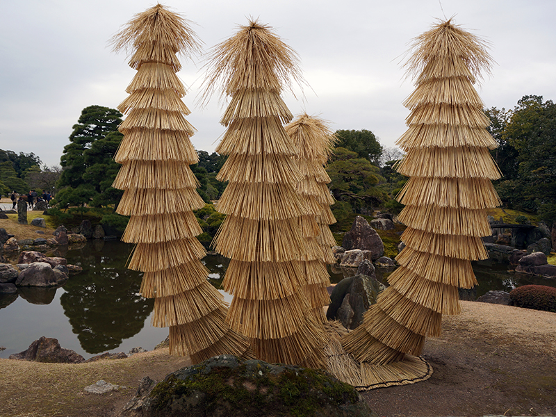 After viewing the interior of shogun palace, it was quite nice to enjoy the surroundings. A pleasant walk through the gardens took me to the objects that looked like art installations. Turned out they covered Japanese sago palms with rice straw called ‘komo’ in order to protect from the cold! The special ornament resembling umbrellas has already become the highlight of the complex’s winter scenery.